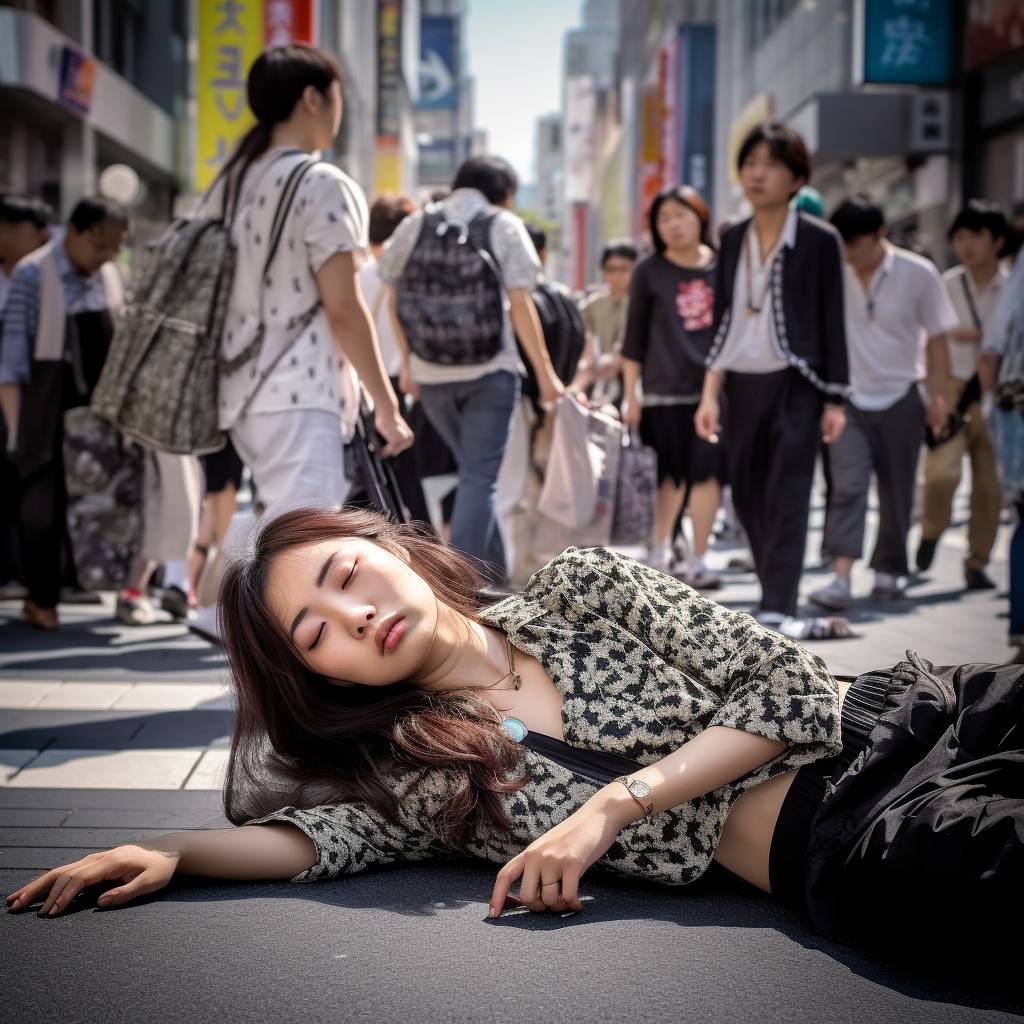 路上で失神する女性 緊迫感ある画像