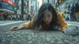 路上で失神する女性 緊迫感ある画像