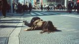路上で失神する女性 緊迫感ある画像
