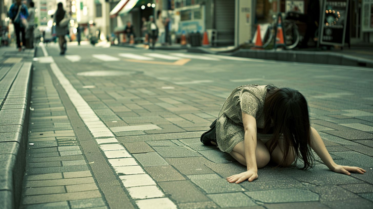 今日のテーマ 茨城県 つくばみらい市の街中で、失神する女子